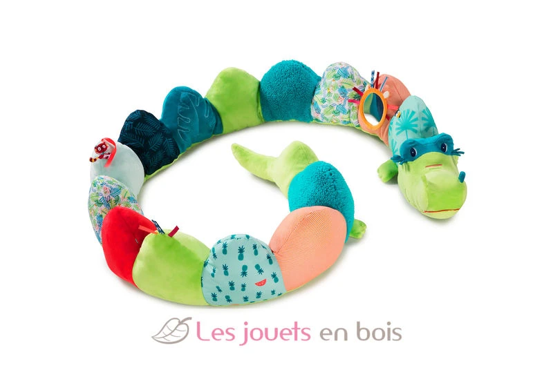 Anatol das Krokodil macht sich mit seinen Farben nicht nur gut als Schutz am Babybett und Laufstall. Dank Rassel, Spiegel und lustigem Knistergeräusch verwandelt sich Anatol in ein herrliches Lernspielzeug.