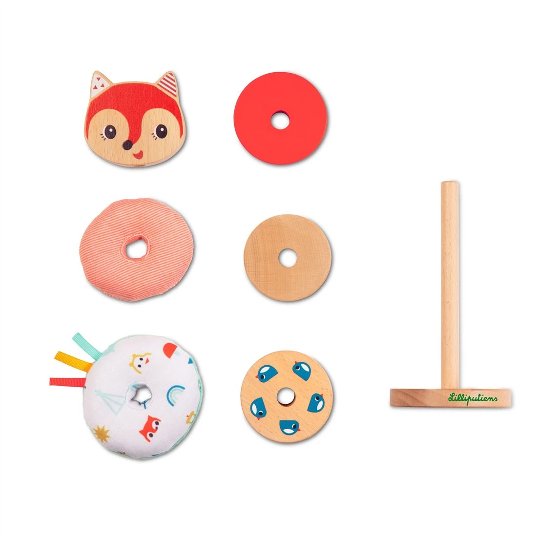 Fröhliche Stapelpyramide zur Förderung der Feinmotorik. Die Elemente dieser Pyramide lassen sich kreativ stapeln. Unterschiedliche Materialien und Farben regen die Sinne an.