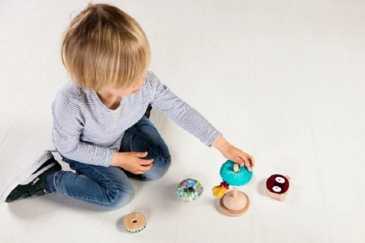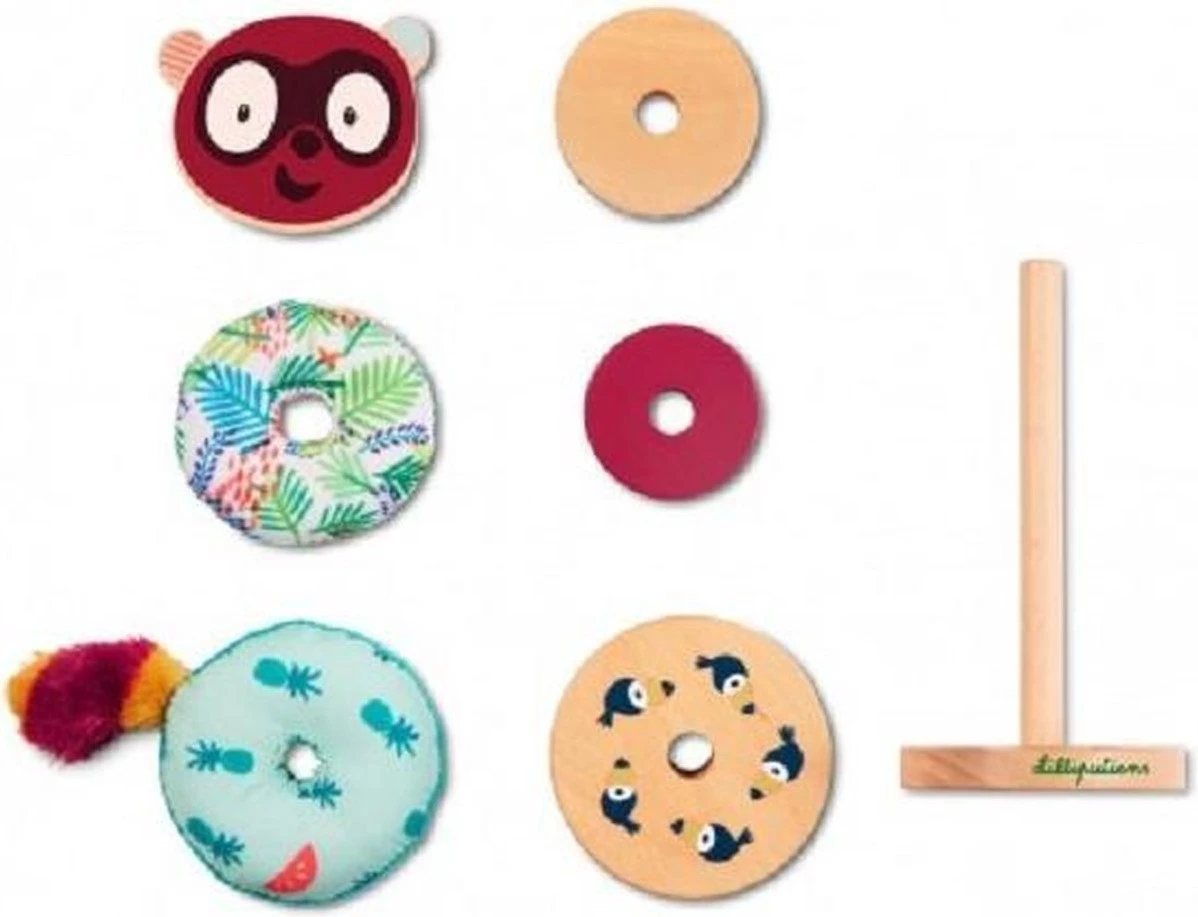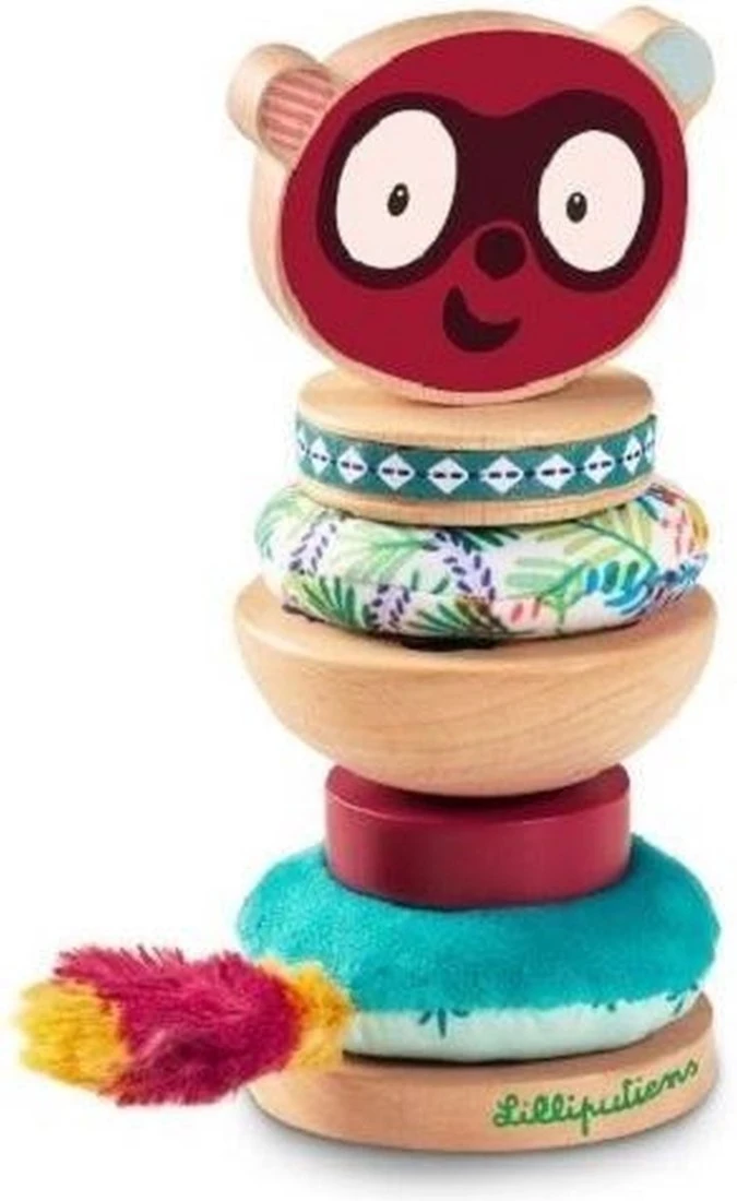 Fröhliche Stapelpyramide zur Förderung der Feinmotorik. Die Elemente dieser Pyramide lassen sich kreativ stapeln. Unterschiedliche Materialien und Farben regen die Sinne an.
