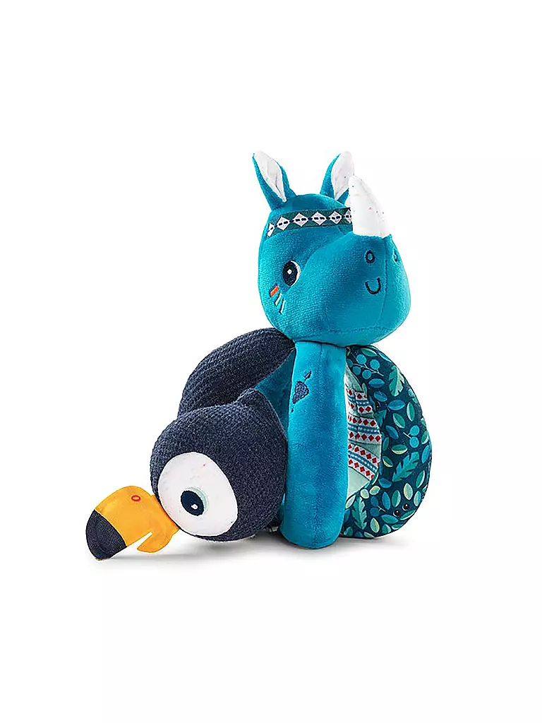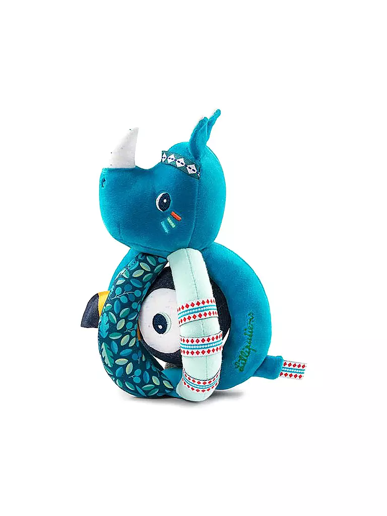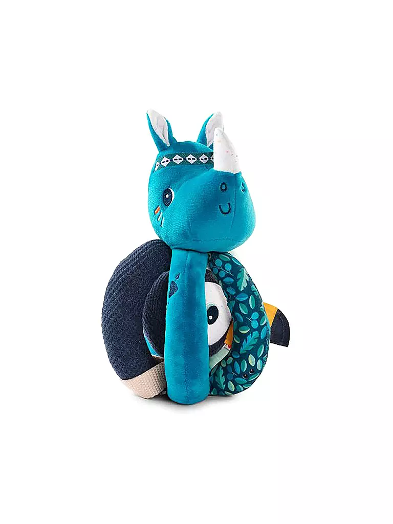 Eine originelle Rassel, für kleine Händchen einfach festzunehmen. Zwischen den Handgriffen versteckt sich ein kleiner Freund.