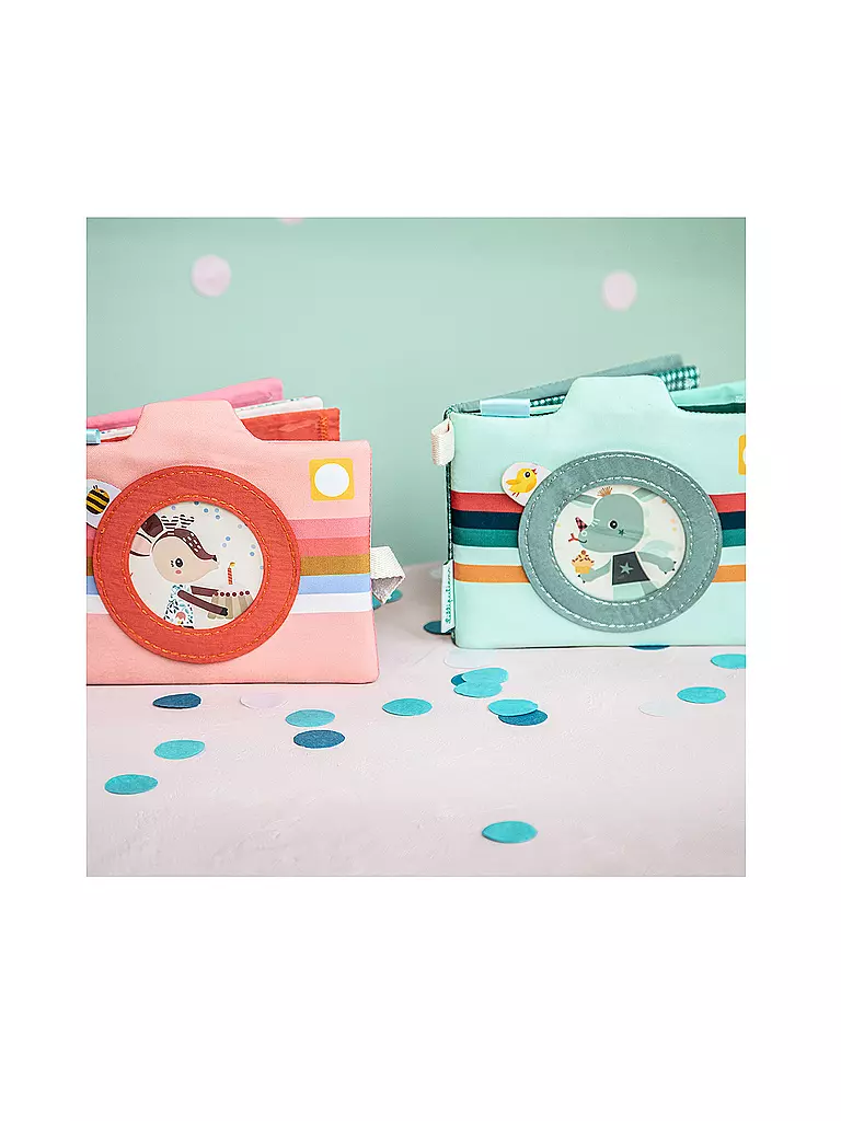 Setzen Sie sich in Pose – und klick! In dieses goldige Fotoalbum können Sie 10 Fotos einstecken. Ideal zum Mitnehmen zu Oma und Opa oder in den Kindergarten.