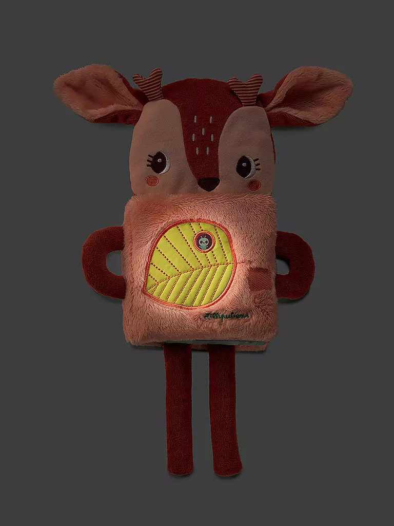 Dieses unwiderstehliche Kuschelbuch beruhigt Ihr Baby. Das Buch bietet zahlreiche ruhige Aktivitäten. Der weiche Stoff und die niedliche Schnauze laden zum Kuscheln ein. Wenn das Licht ausgeht, leuchtet die Abbildung auf der Titelseite auf und wird für kurze Zeit ein Wachlicht, bis das Baby einschläft.