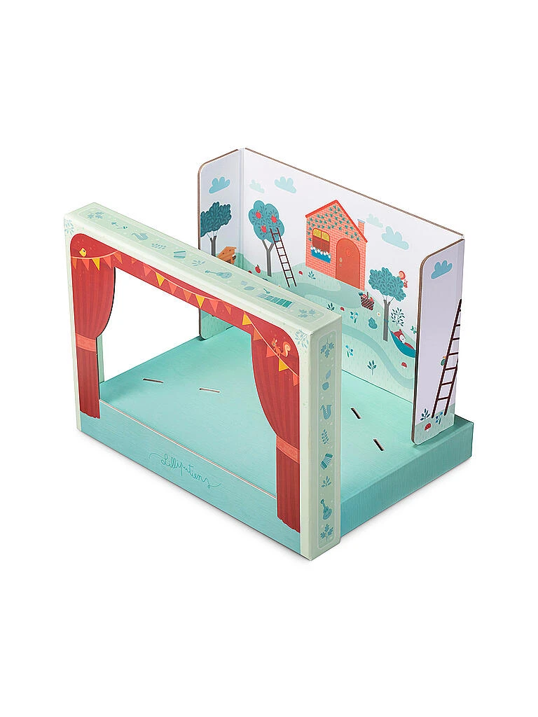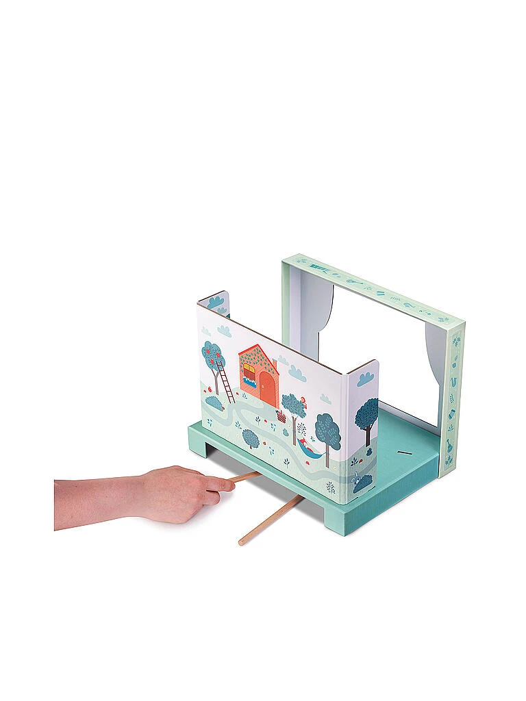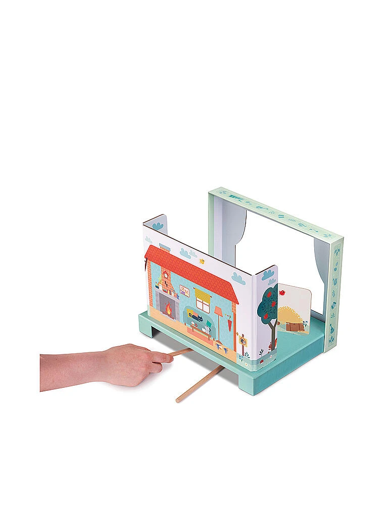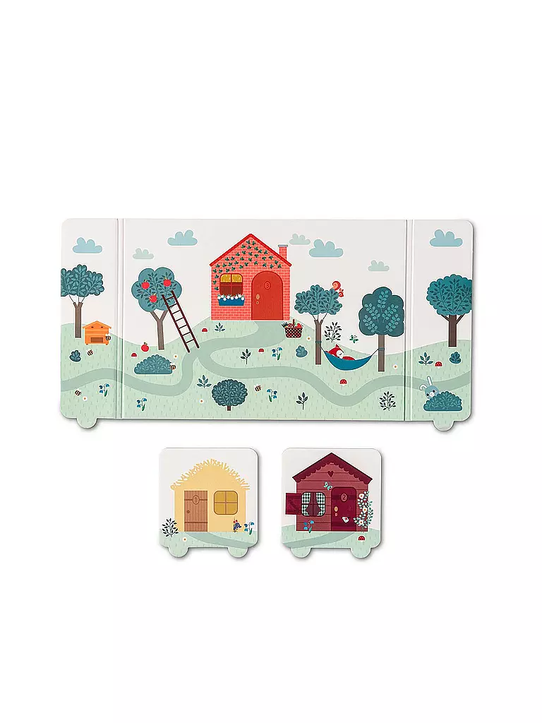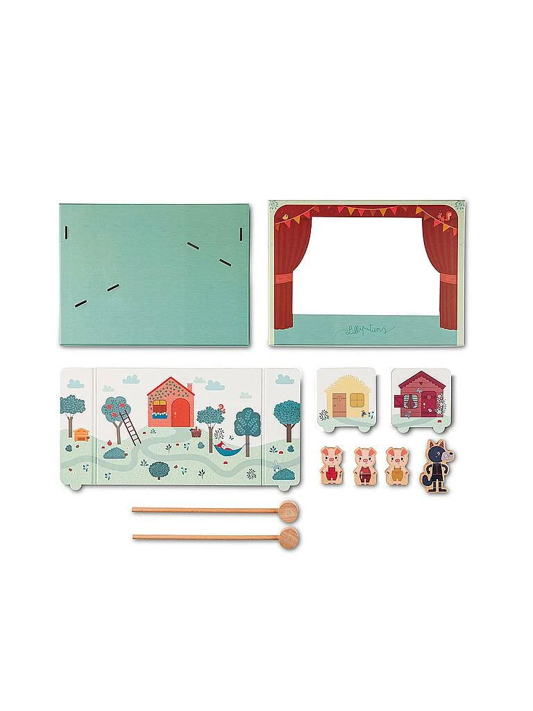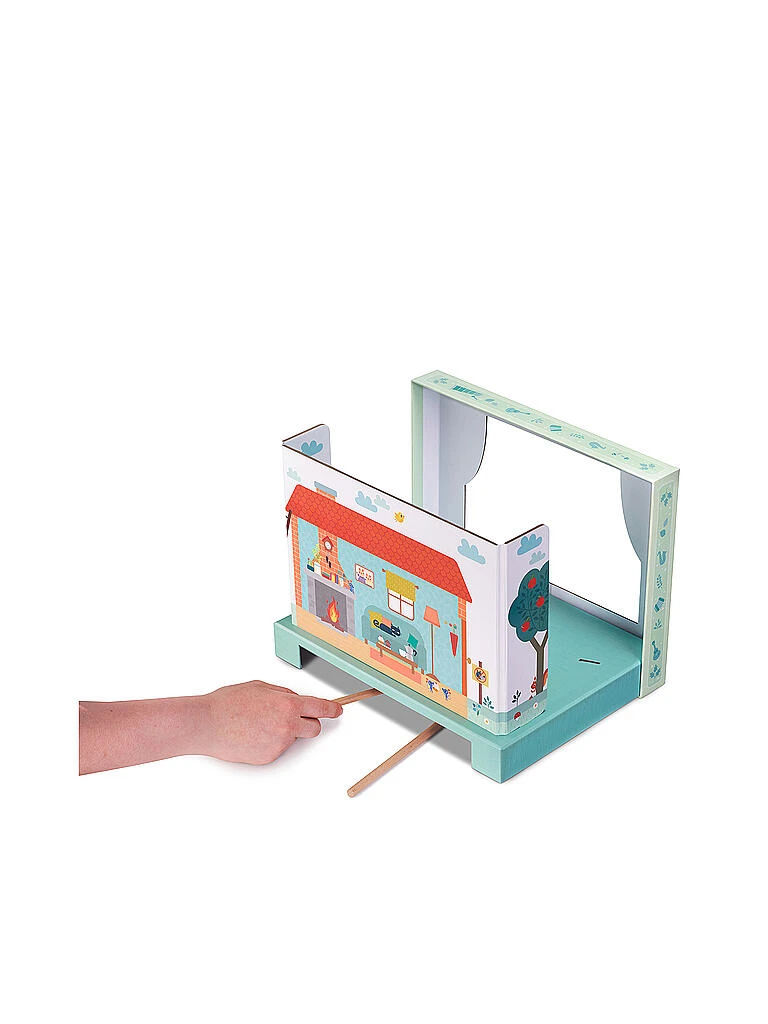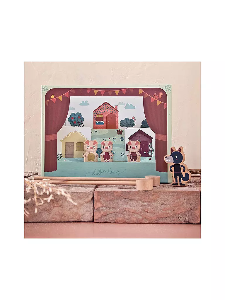Mit diesem tollen Theater spielen Sie die Geschichte von Der Wolf und die 3 Schweinchen nach oder denken sich Ihre eigene Geschichte aus! Die Holzfiguren bewegen sich durch 2 Holzstäbe mit Magnet über die Szene, zwischen den wunderschön illustrierten Kulissen. Die Schachtel wird im Handumdrehen in ein Theater umgebaut. Die Kulissen sind zweiseitig, damit Sie mehrere Szenen erschaffen können. 4 Holzfiguren werden durch die magnetisierten Stäbe auf der Bühne zum Leben erweckt: der Wolf und die 3 Schweinchen.