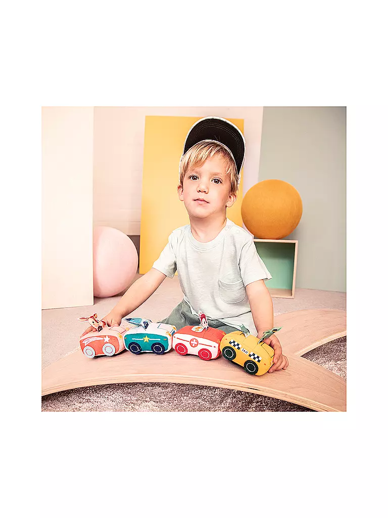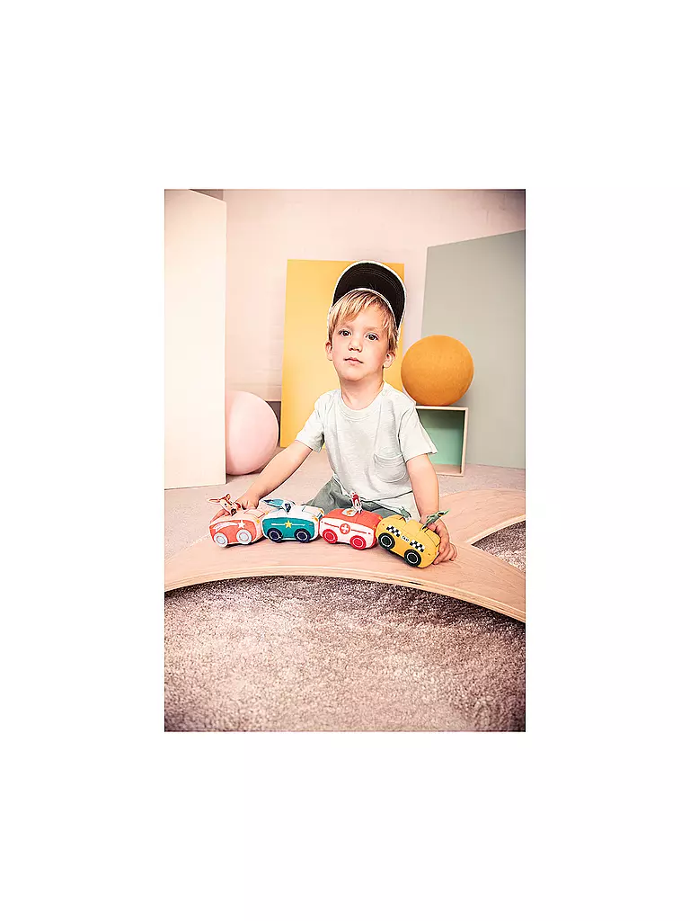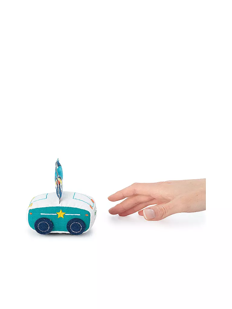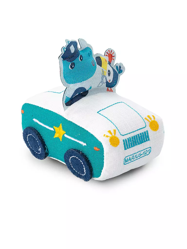Marius springt flugs in sein Polizeifahrzeug und eilt zu Hilfe. Dieses weiche Auto ist ideal für kleine Händchen. Einfach ein Stück zurückziehen, und schon fährt das Auto los!