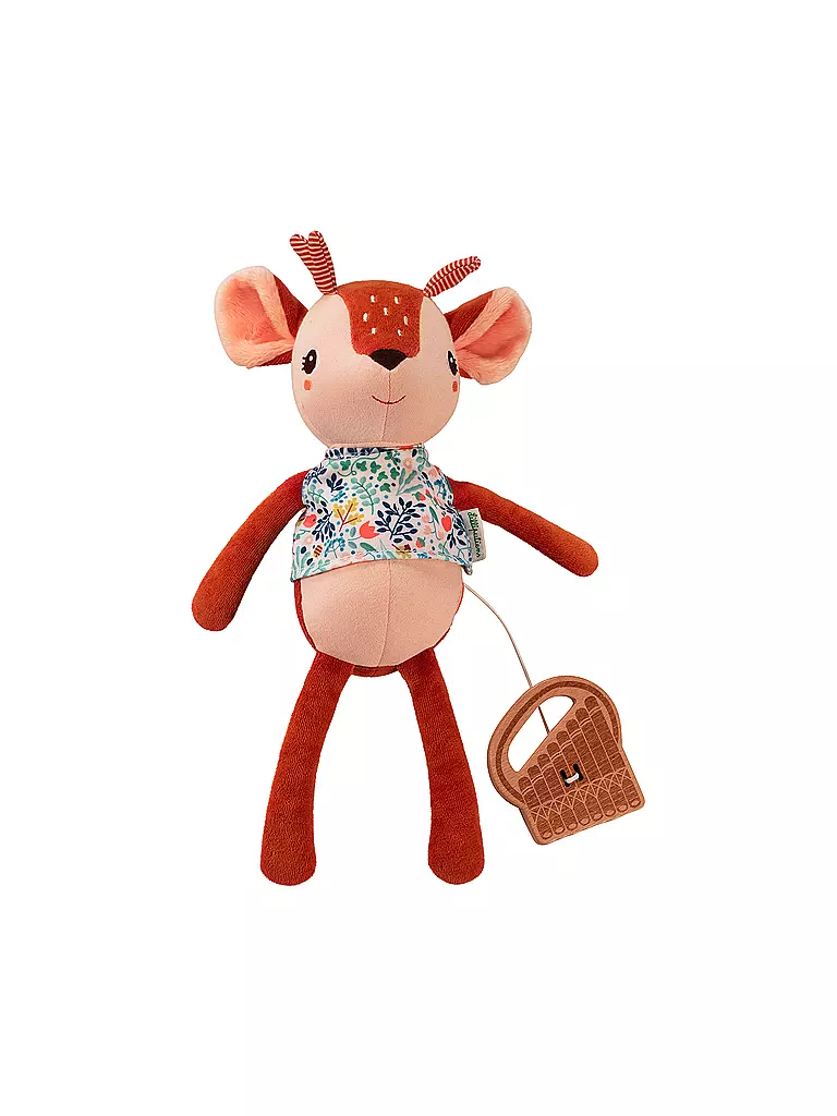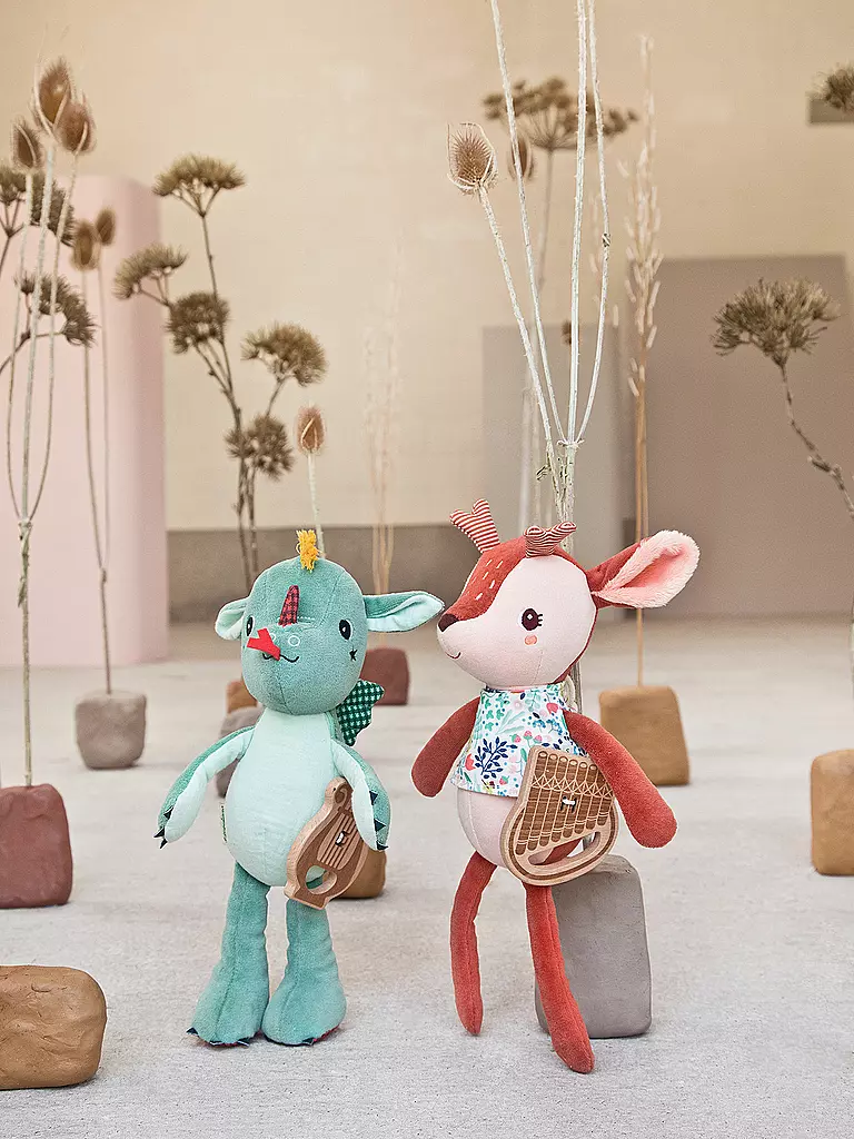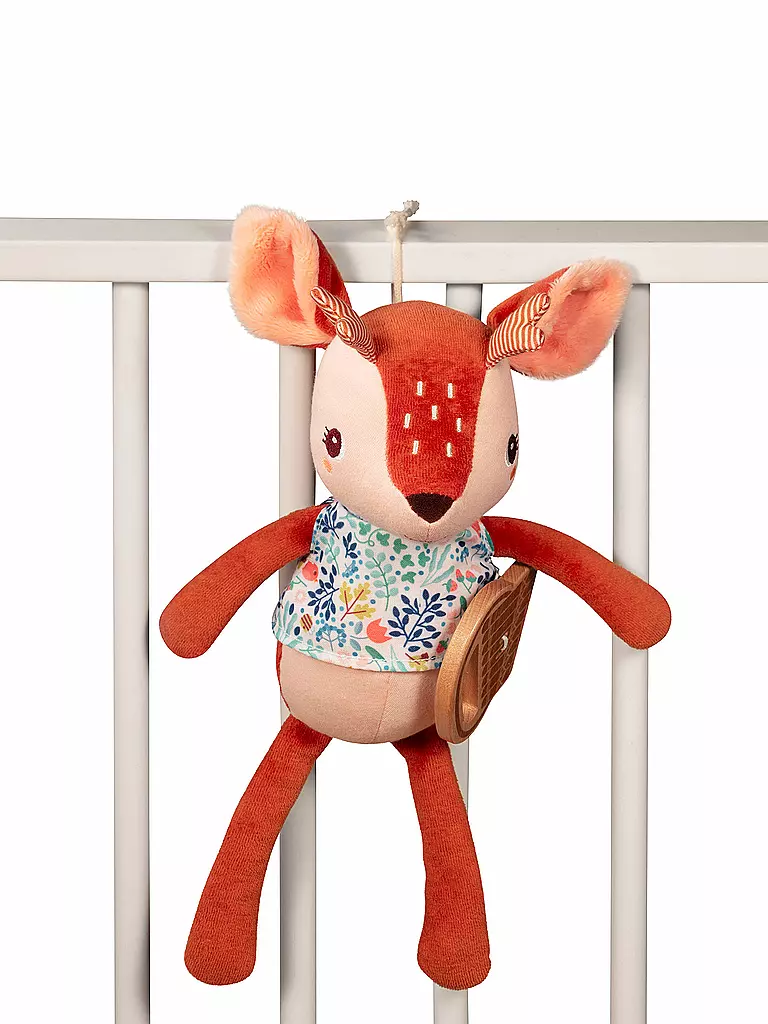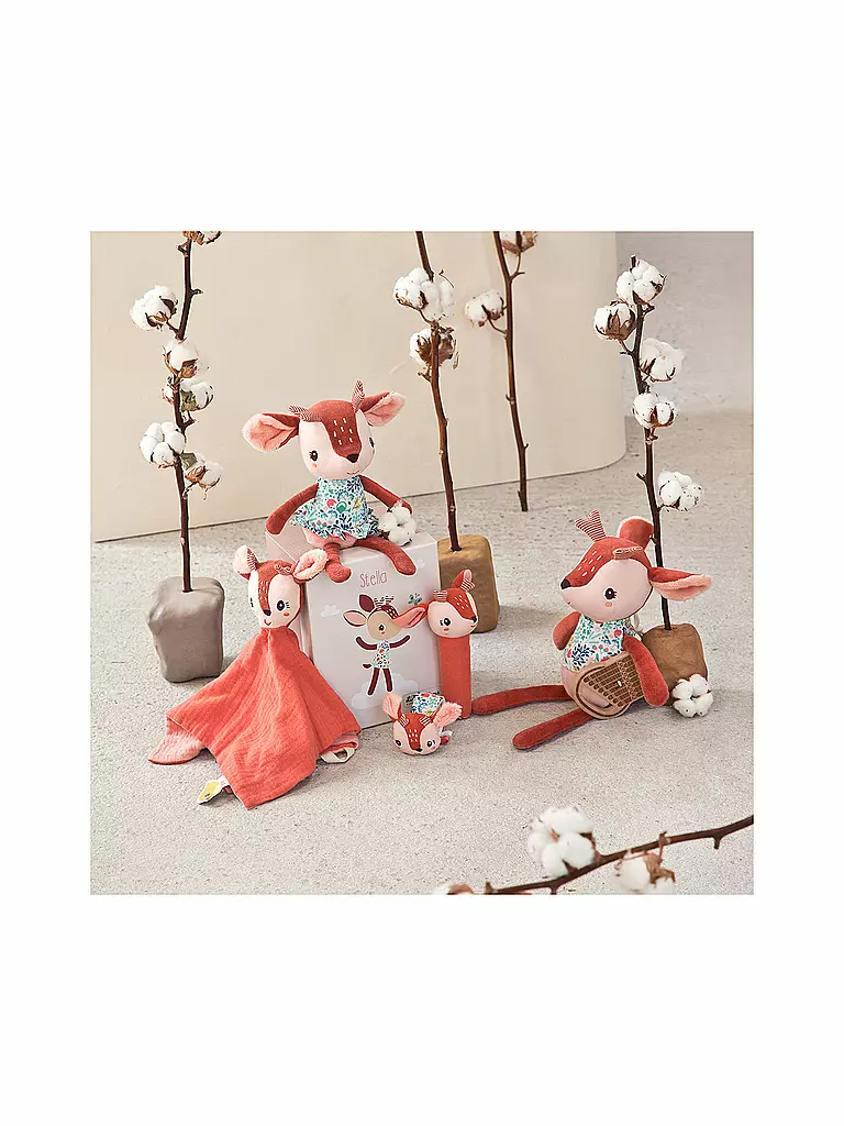 Wenn es Zeit zum Schlafengehen ist, beginnt Stella, auf ihrer Panflöte zu spielen. Zu den sanften Tönen von „Feelings begleitet sie die Kleinsten ins Land der Träume. Das Musikkuscheltier kann in der Waschmaschine gewaschen werden. Zu diesem Zweck müssen die hölzerne Panflöte und die Musikdose zuerst entfernt werden.