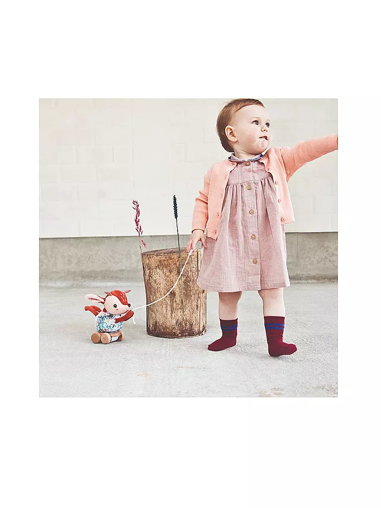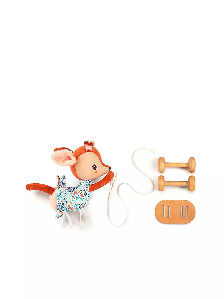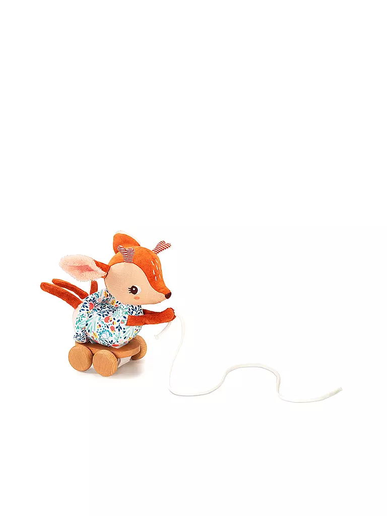 Mit Stella, der Hirschkuh, als Verbündete fühlen sich die ersten Schritte nicht mehr so beängstigend an. Stimuliert das selbstständige Gehen.