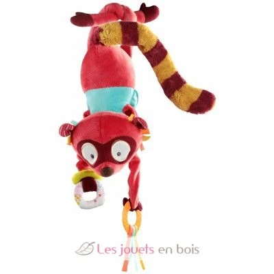 Ziehe an den Pfoten von Georges dem Lemur, um die Musik erklingen zu lassen! Schau‘, wie seine Bäckchen blinken, während eine sanfte Melodie ertönt. Als kleiner Akrobat verfügt er über verschiedene Ringe, an denen nach Lust und Laune herumhantiert und herumgekaut werden kann!