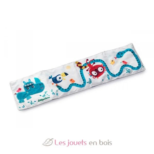 Bilderbuch-Dschungel-Akkordeon, ein Aktivitätsbuch aus Stoff der Marke Lilliputiens. Referenz 83312